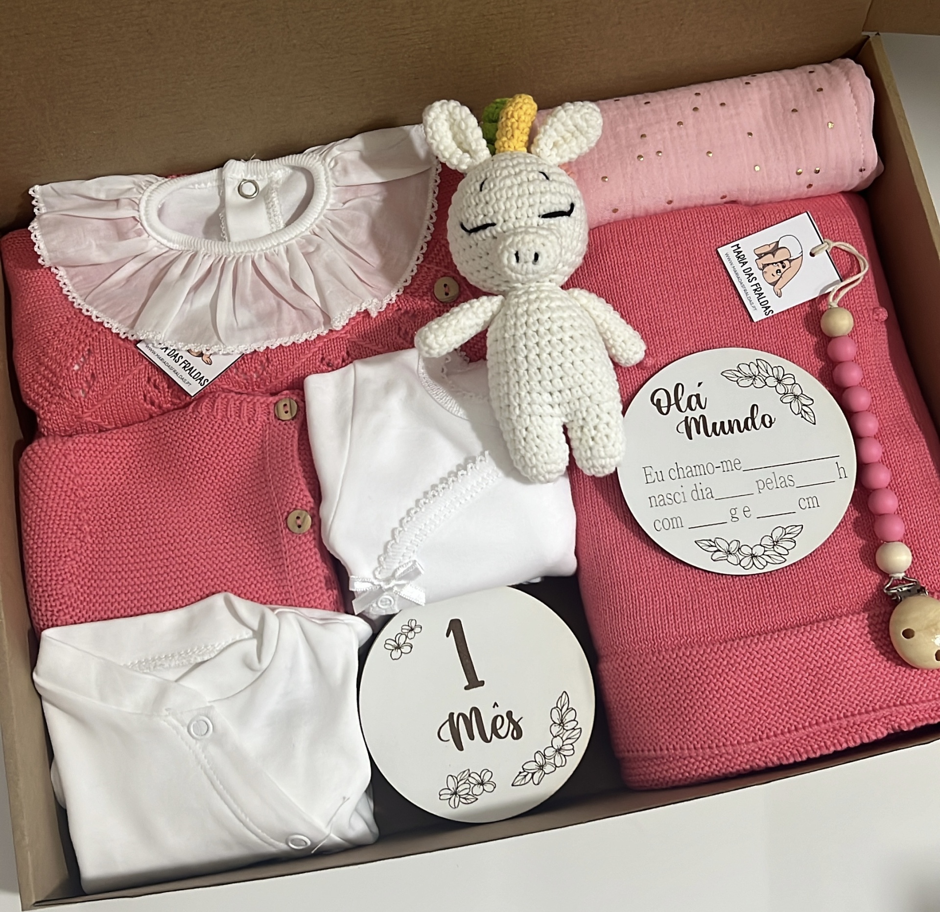 Baby Box Espiga (14 peças) 110,96 € 138,70 € Desconto de 20%. Partilhar Compre este produto e ganhe 110 Pontos! Saída Maternidade 0-3m Interiores 0m 1m 3m 6m Gola Circular Redonda Em bico Comprar Contactar Inclui: - Camisola malha algodão espiga - Calça malha algodão com pé - Gorro malha algodão espiga - Body com gola - Casaco de malha algodão - Body trespasse manga comprida algodão - Calça com pé algodão - Babygrow algodão - Conjunto placas mês aniversários - Manta de malha algodão - Fralda swaddle algodão orgânico - Prendedor chupeta silicone - Chocalho amigurumi - Placa registo dados nascimento