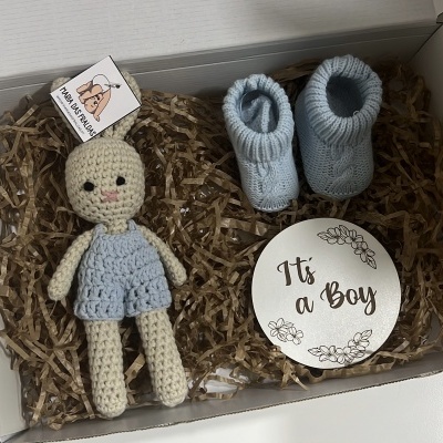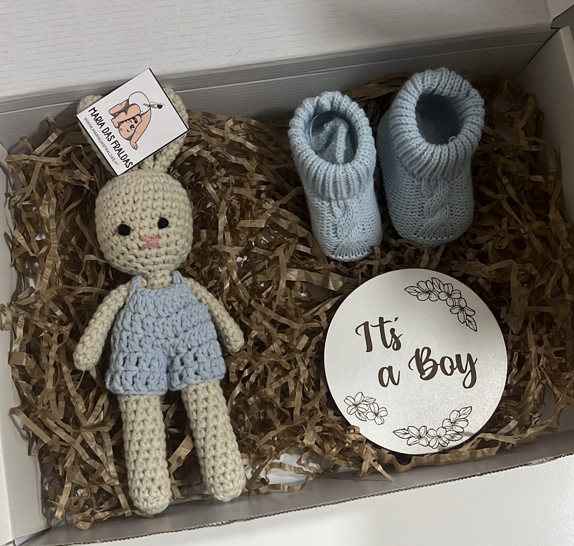 Baby Box It´s a Boy (3 peças) 22,50 € 25,00 € Desconto de 10%. Partilhar Compre este produto e ganhe 22 Pontos! Comprar Contactar Pensada para fazer parte da história dos chás de revelação, esta baby box contempla muita ternura e emoção. Esta baby box está disponível em feminina ou masculina, no entanto, se assim desejar, poderá fazer alterações ao conteúdo e cor da mesma.